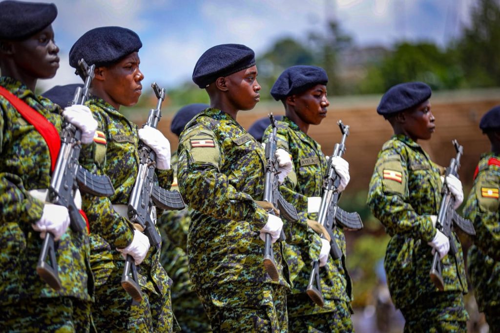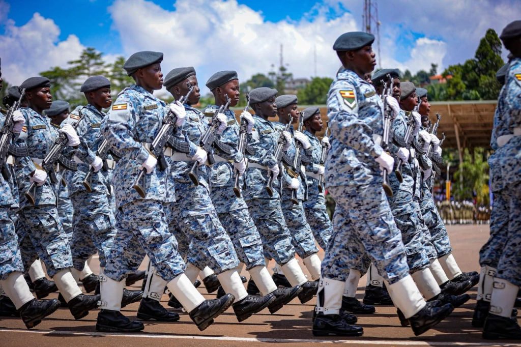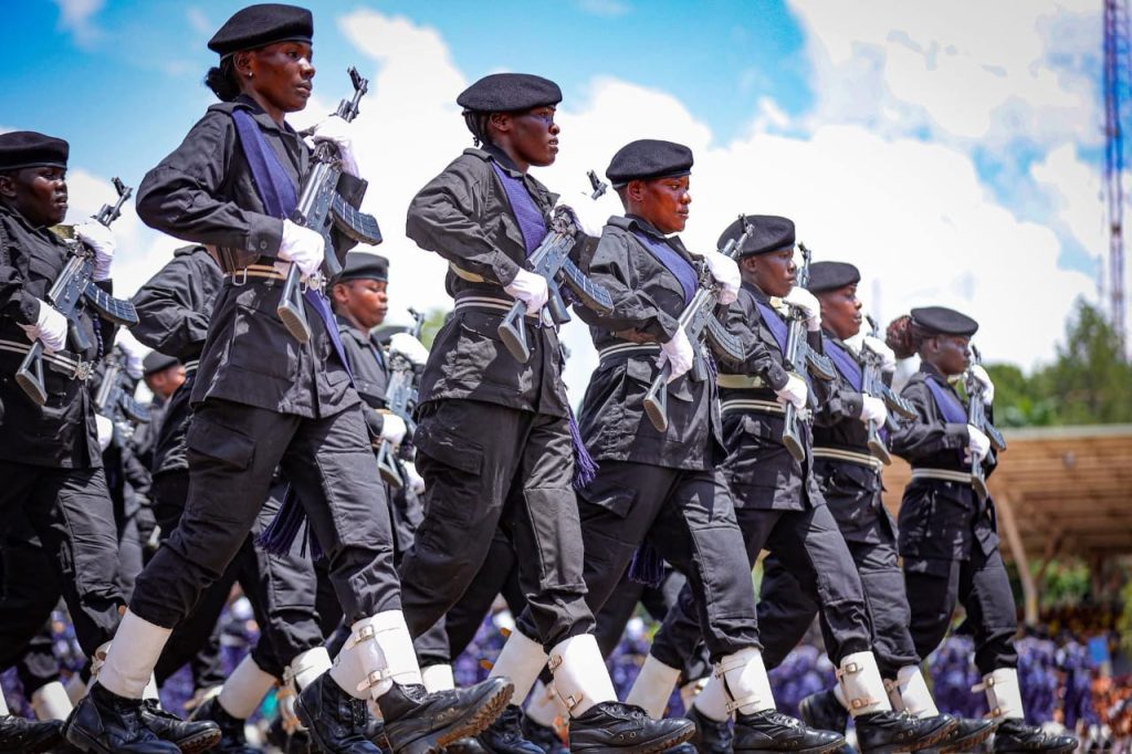 Women in security forces parade during International Women’s Day celebrations in Kampala, highlighting unity and national pride